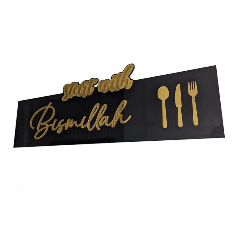 Start with Bismillah, End with Alhamdulillah” Golden Acrylic & Wooden Islamic Wall Art