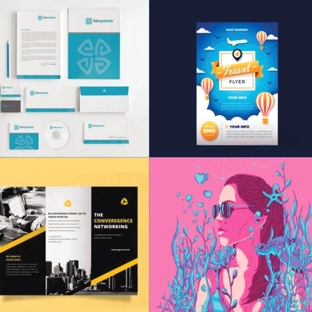 Business cards, brochures, bill books, letterheads, albums, stickers, and all paper-based marketing tools.